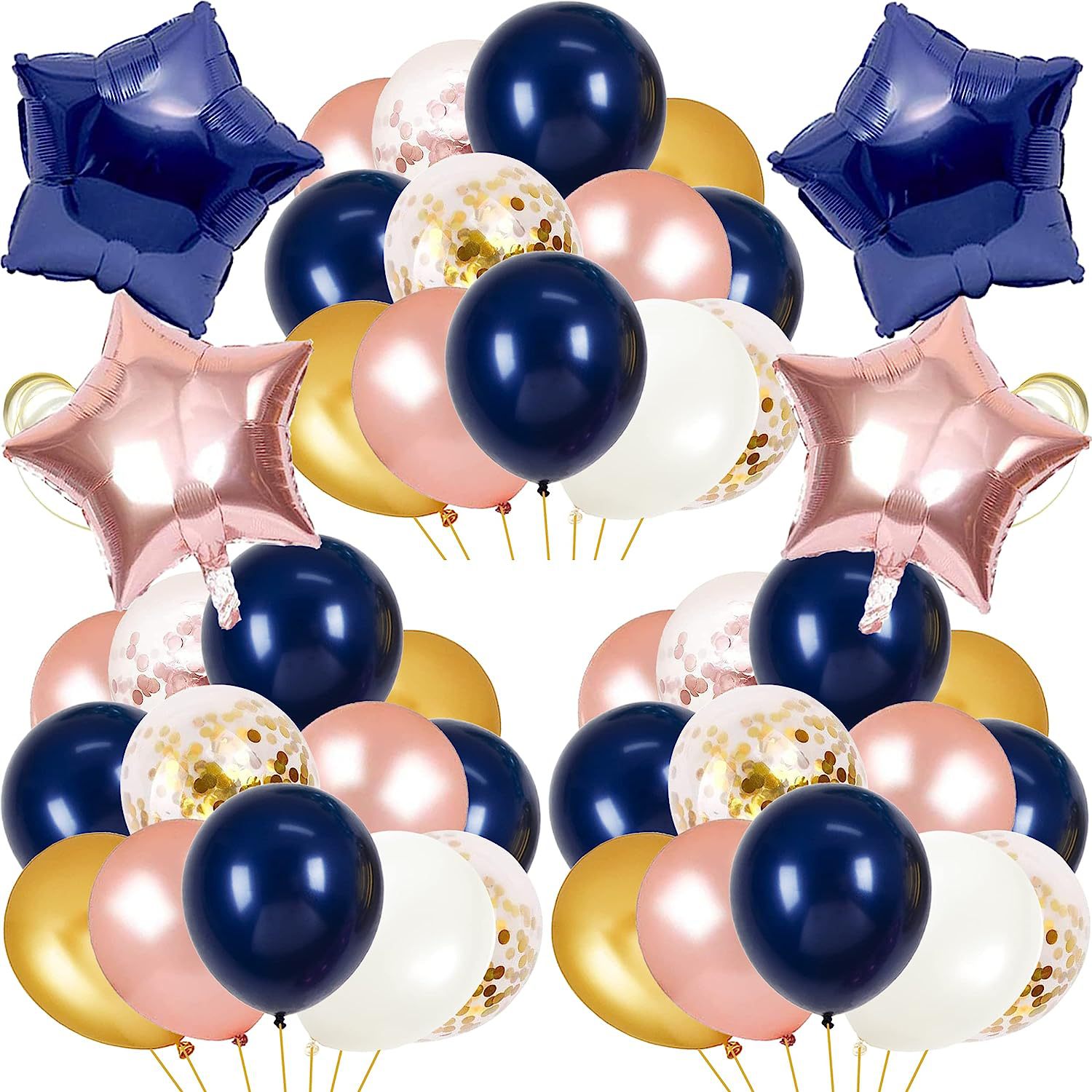 64ピース海军ブルーローズゴールドピンクバルーン诞生日赤ちゃん花嫁赠り物会性别掲示结婚式パーティー服