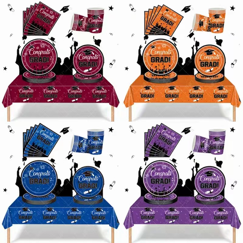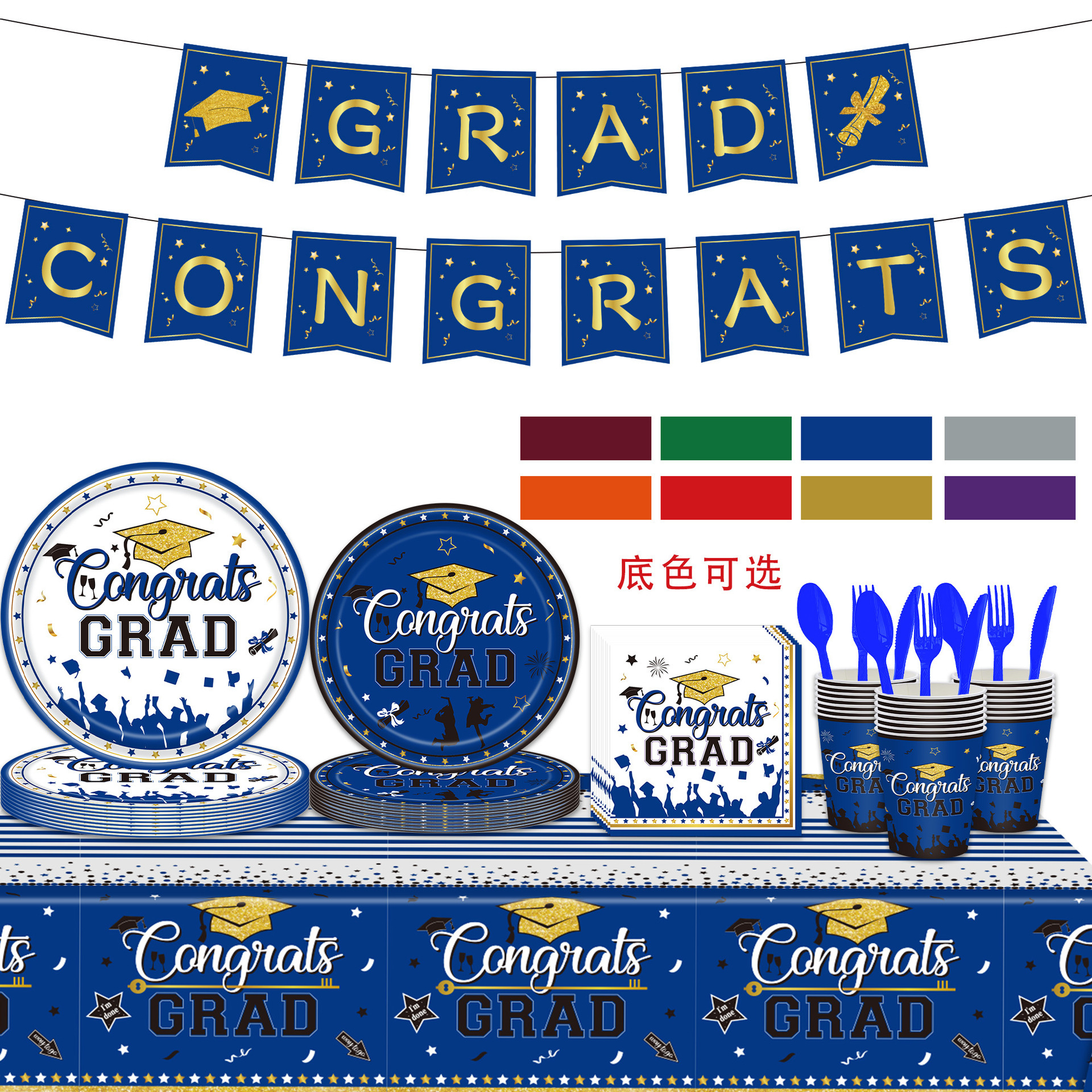 2025 新しい卒業シーズン使い捨てパーティー食器セット大人用紙皿、紙コップ、フラグ、パーティー PE テーブルクロス