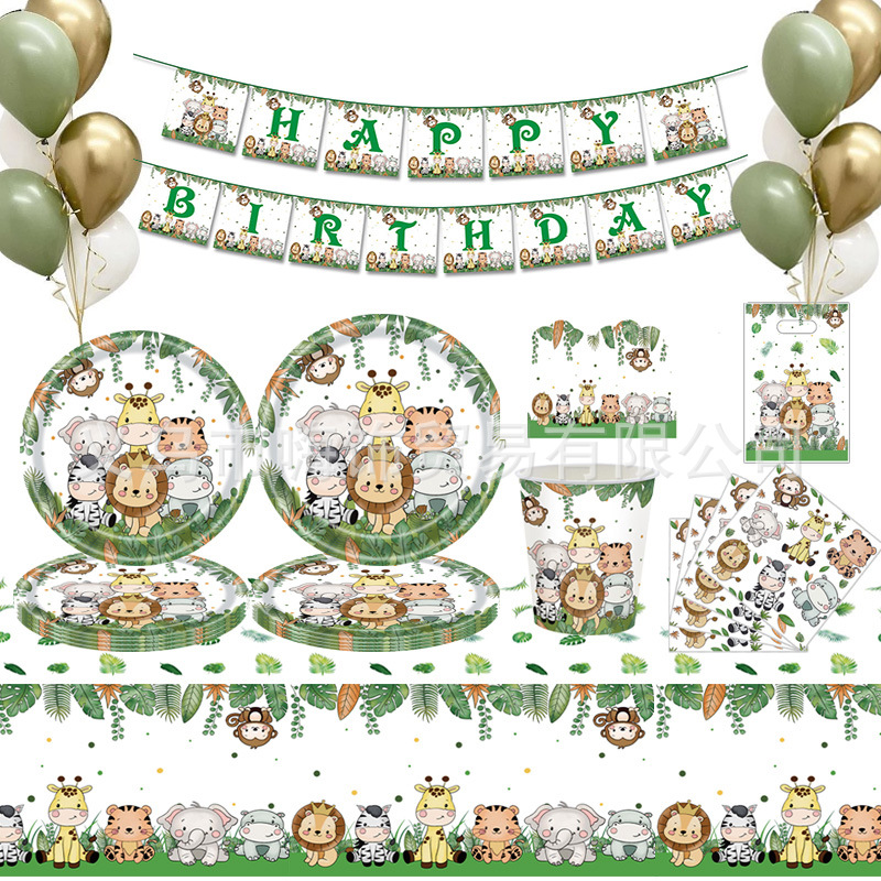 国境を越えたジャングル動物園パーティーテーマ誕生日パーティーセット食器セット紙皿ペーパータオルテーブルクロス旗