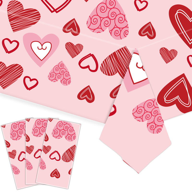 クロスボーダー2023年バレンタインデーテーブルクロス新型ピンクバレンタインデーテーマパーティー使い捨てテーブルクロス装飾