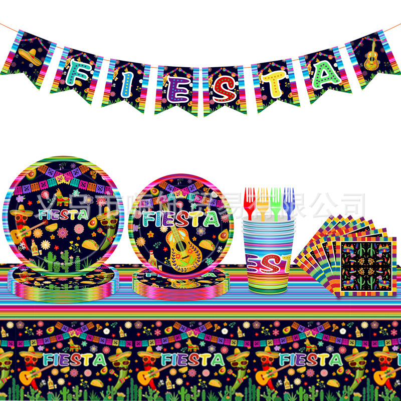 国境を越えた新型メキシコカーニバルパーティー食器旗セット紙コップ紙皿ペーパータオルナイフフォークスプーンテーブルクロス