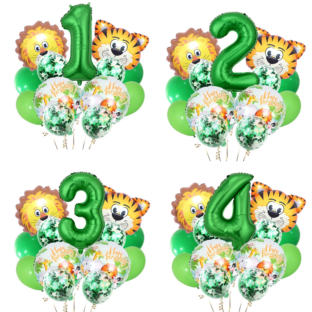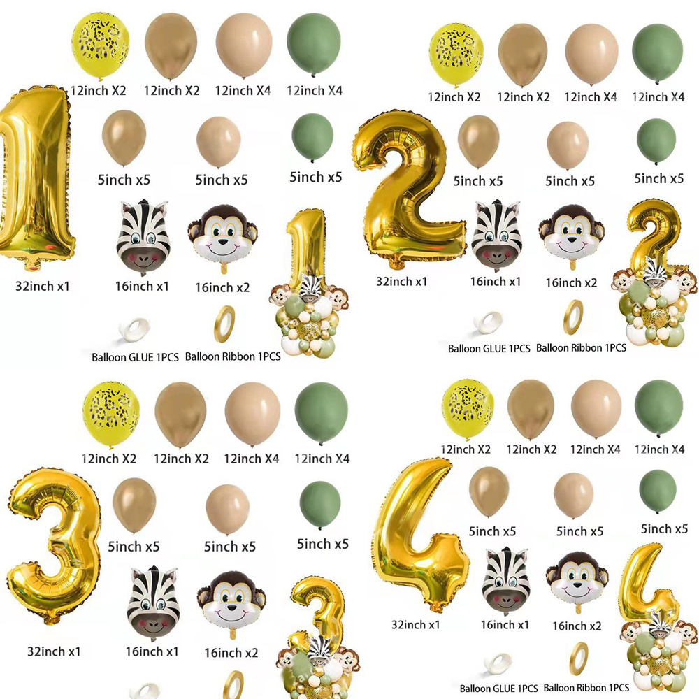 新しいジャングル野生動物風船セット子供の誕生日1-9歳飾り金色アルミ箔着地風船