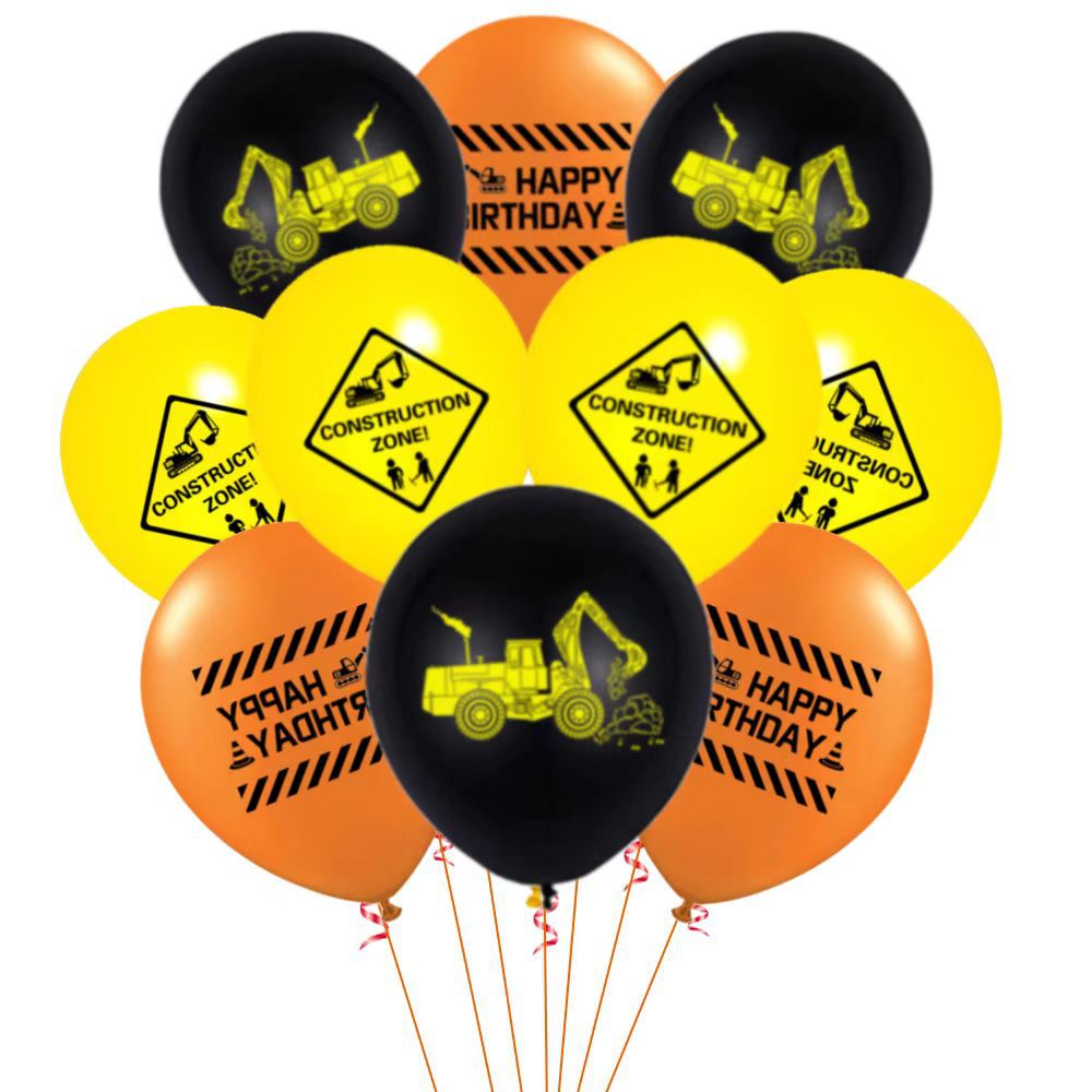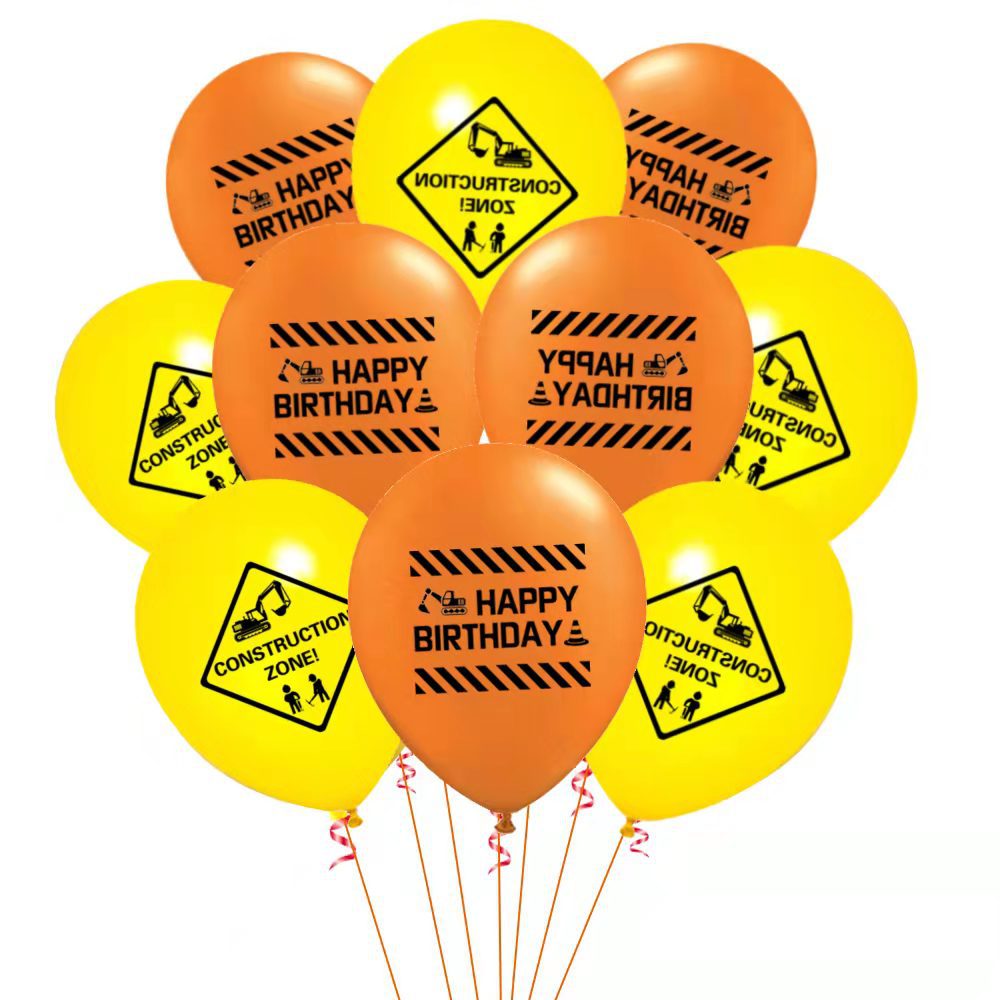 工事車のテーマ12インチラテックス風船子供誕生日パーティー黄黒オレンジ色工事車プリントラテックス風船