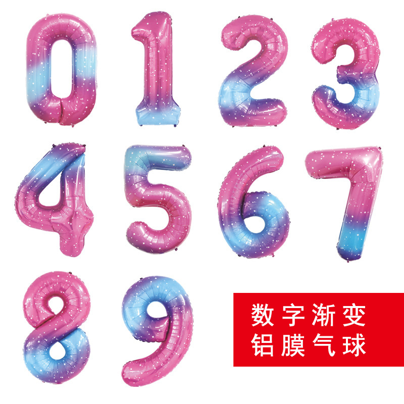新型クロスボーダー40インチ星空グラデーション数字0-9アルミ膜アルミ箔風船デパート誕生日パーティー配置