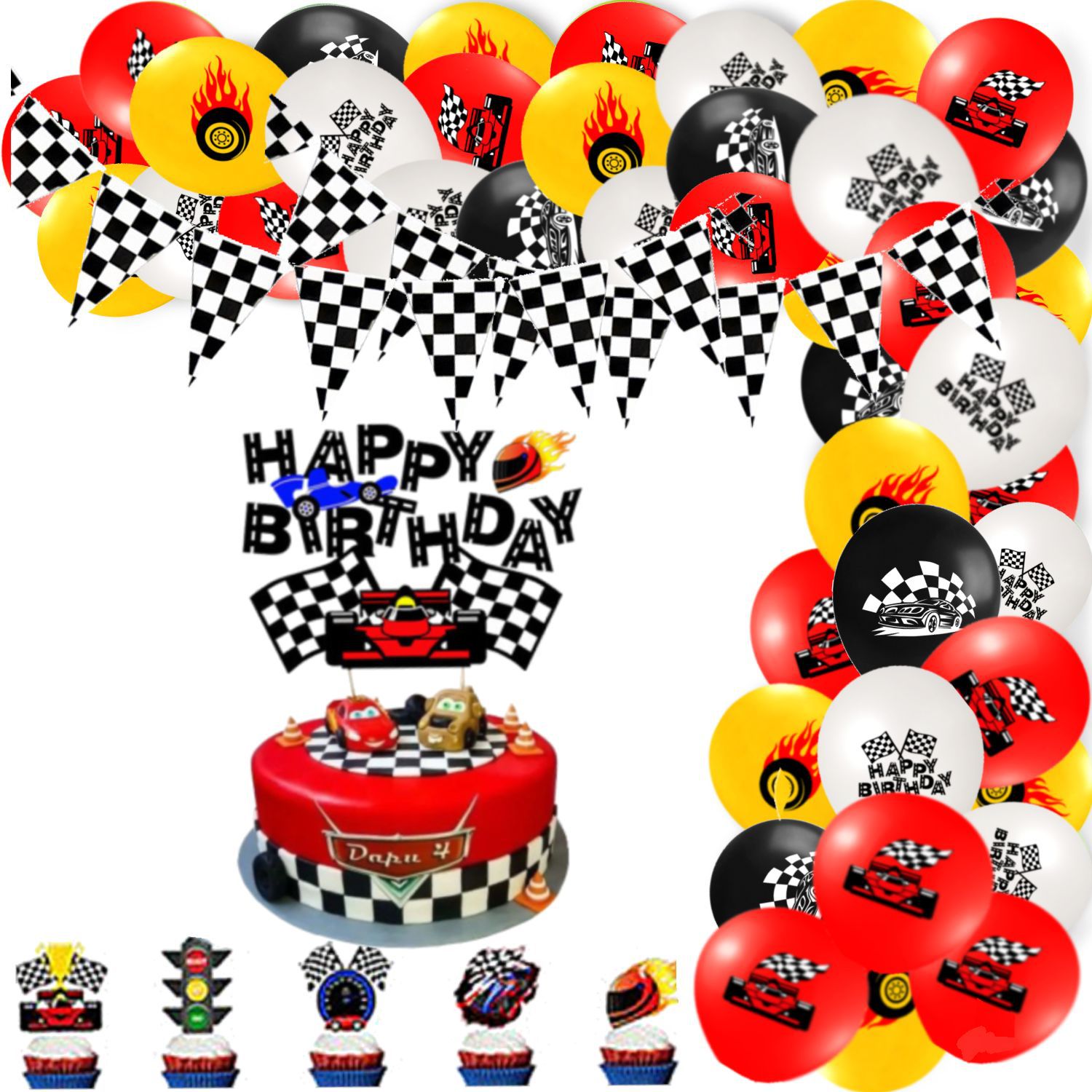 新型レーシングテーマ12インチ黒赤黄白風船拉旗誕生日パーティー幼稚園学校装飾配置