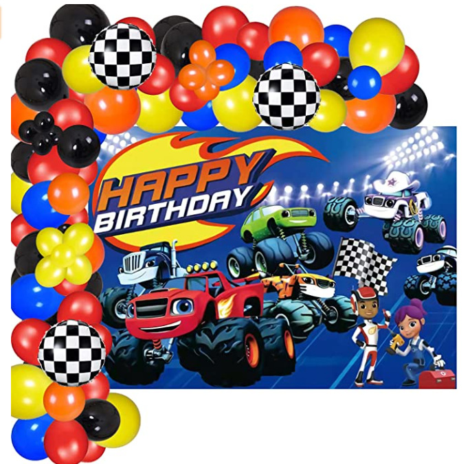 新しいレーシングテーマ12インチ赤黄黒紺色オレンジ色のボール背景布誕生日パーティー装飾配置