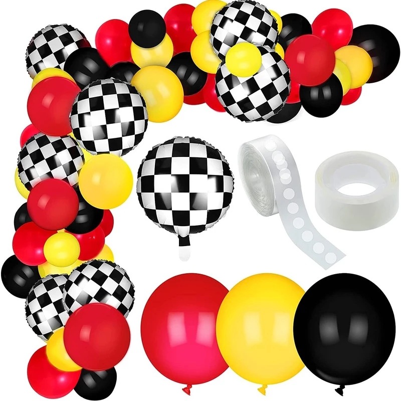 新しいレーシングテーマ黒赤黄色方眼アルミ膜風船誕生日パーティー幼稚園学校装飾配置