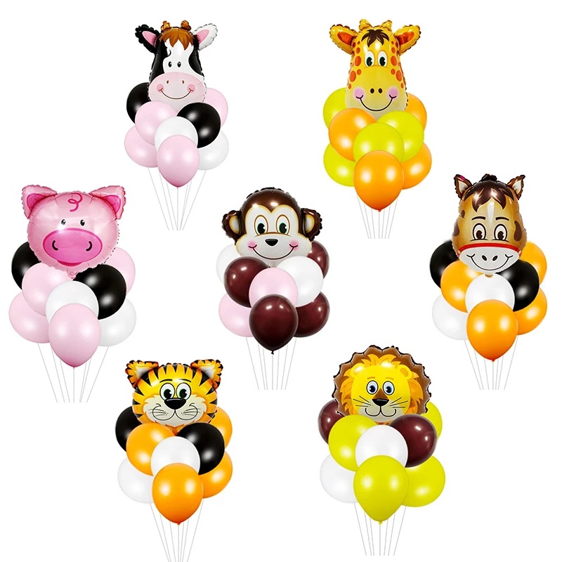 新品タイガーライオン乳牛頭猿シマウマ32インチアルミ膜風船セット子供誕生日パーティー装飾