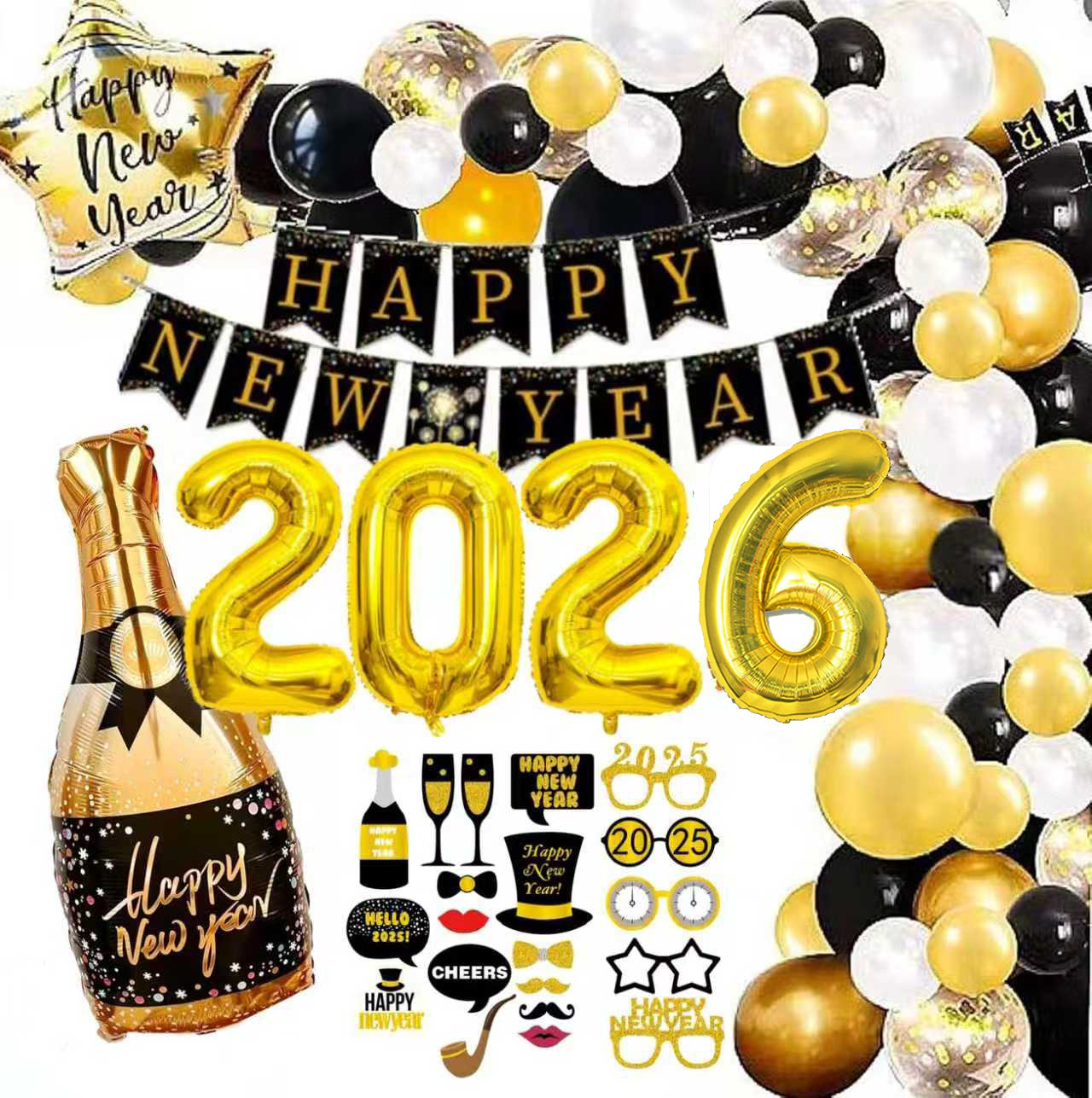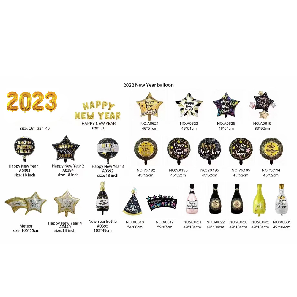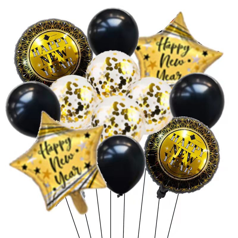 2023年新年12寸金色スパンコール12寸黒色風船18寸アルミ膜風船新年パーティーアレンジ