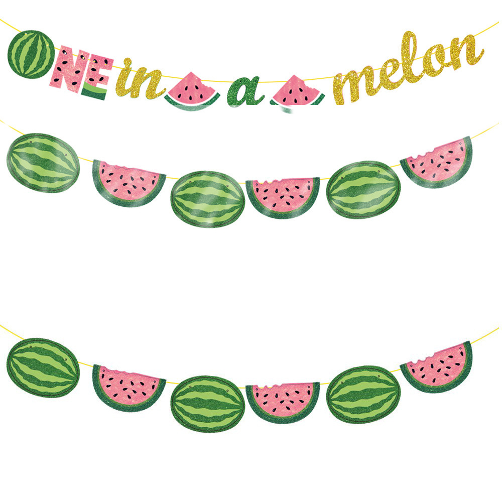 新型夏果物スイカ誕生日テーマ花子供誕生日1-9月パーティー装飾花カード