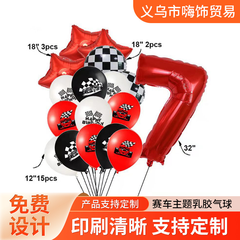 レーシングテーマ12インチ黒赤風船子供誕生日パーティー幼稚園学校デパート装飾風船