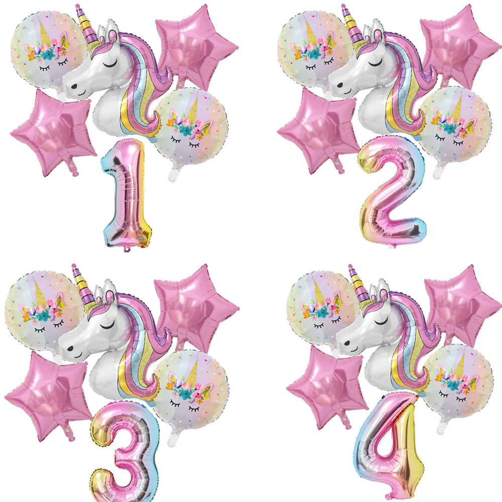 新品32インチデジタル18インチアルミ膜バルーンセットユニコーンテーマ诞生日パーティー装饰ベビーシャワーボール