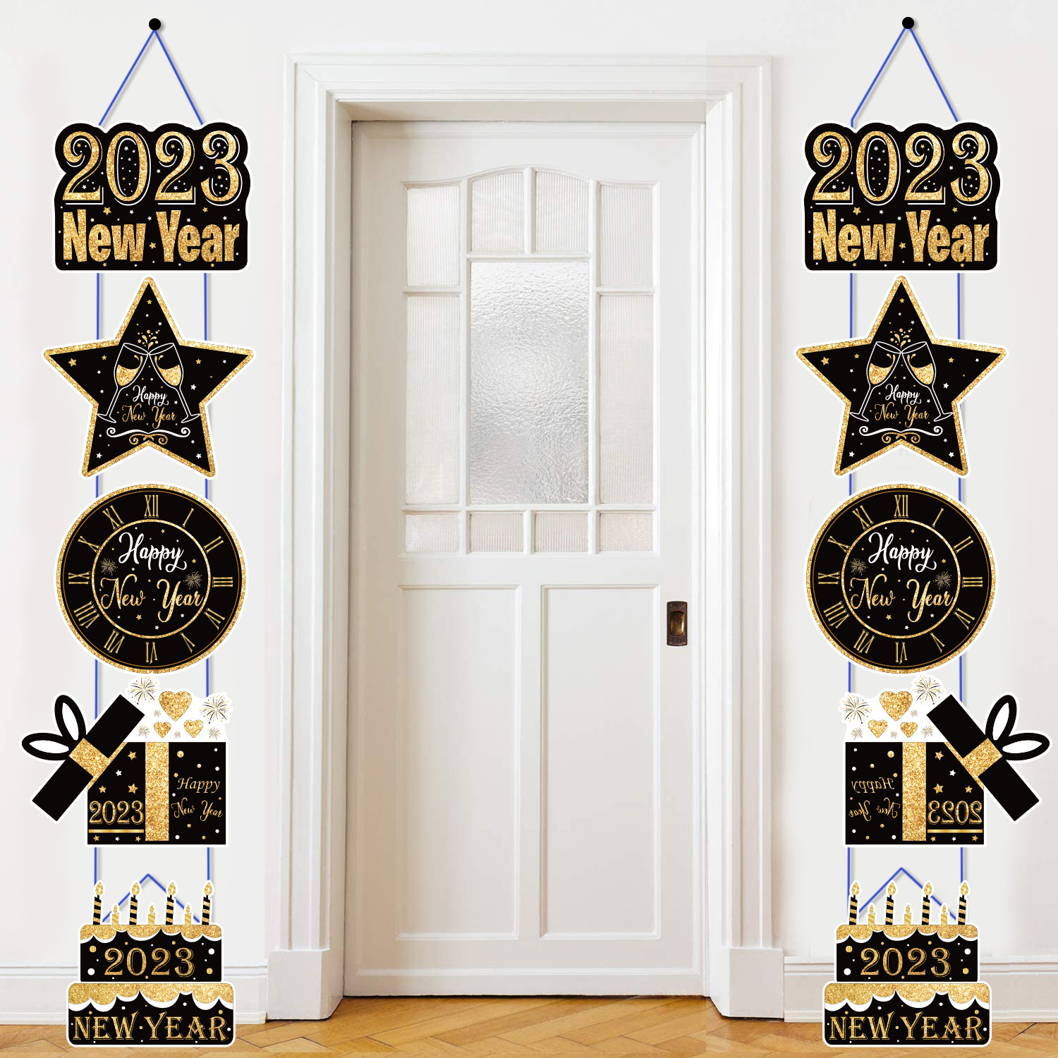 2024年新年ポーチロゴ吊りバナー黒金装飾装飾新年パーティー壁ドア掛けバナー