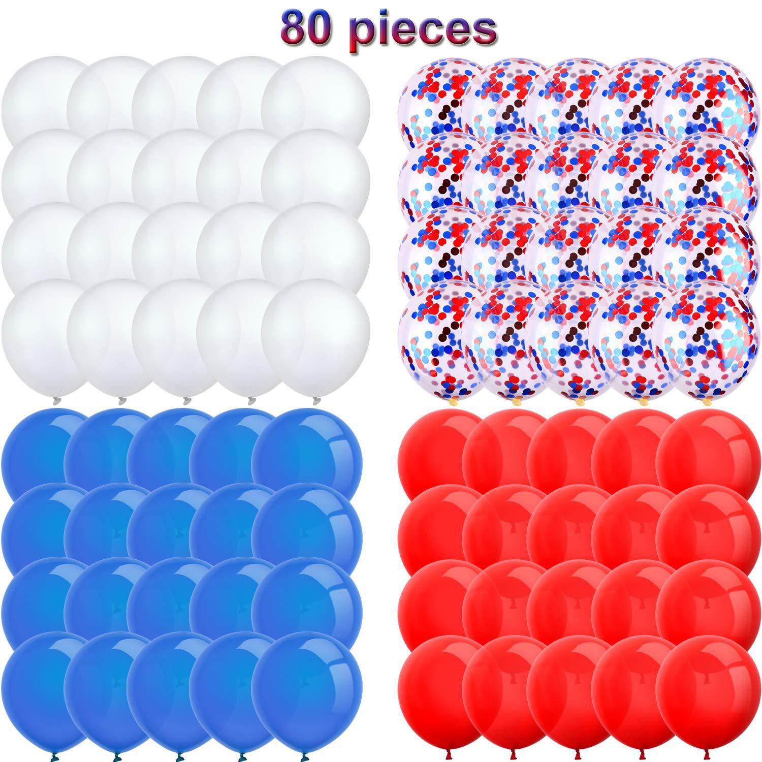 新作12インチ赤青白カラースパンコールバルーン80点セットアメリカ独立日パーティ装飾用