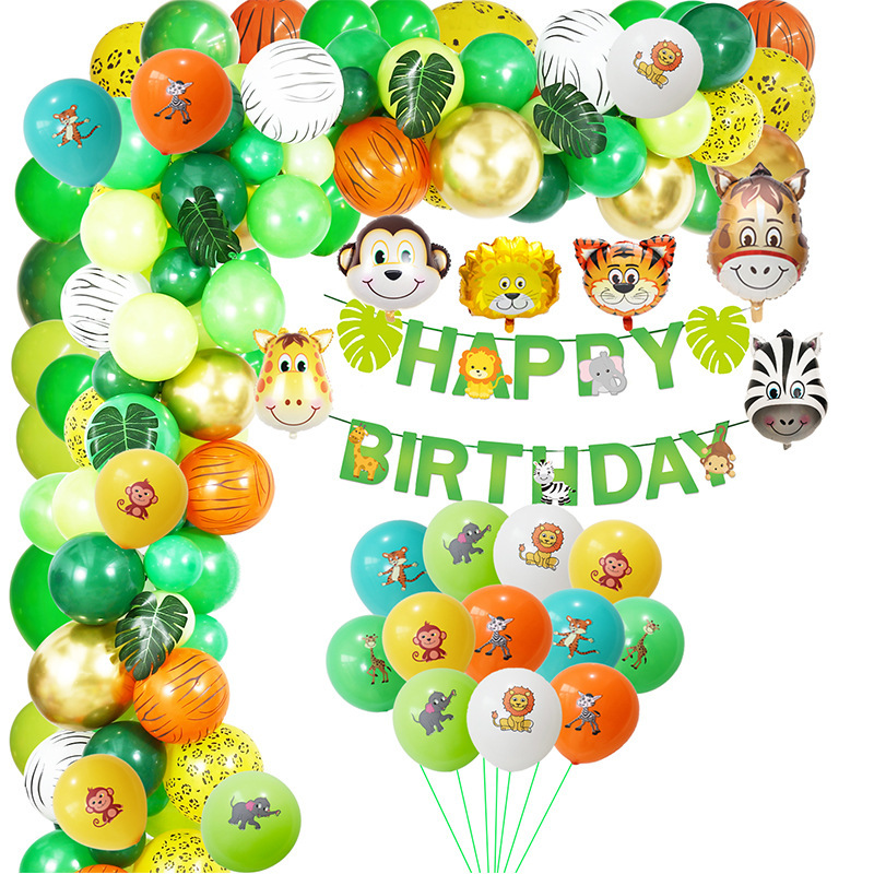 新品12インチ10インチ5インチラテックスバルーンチェーンコンビネーションジャングル野生動物園子供誕生日パーティー装飾