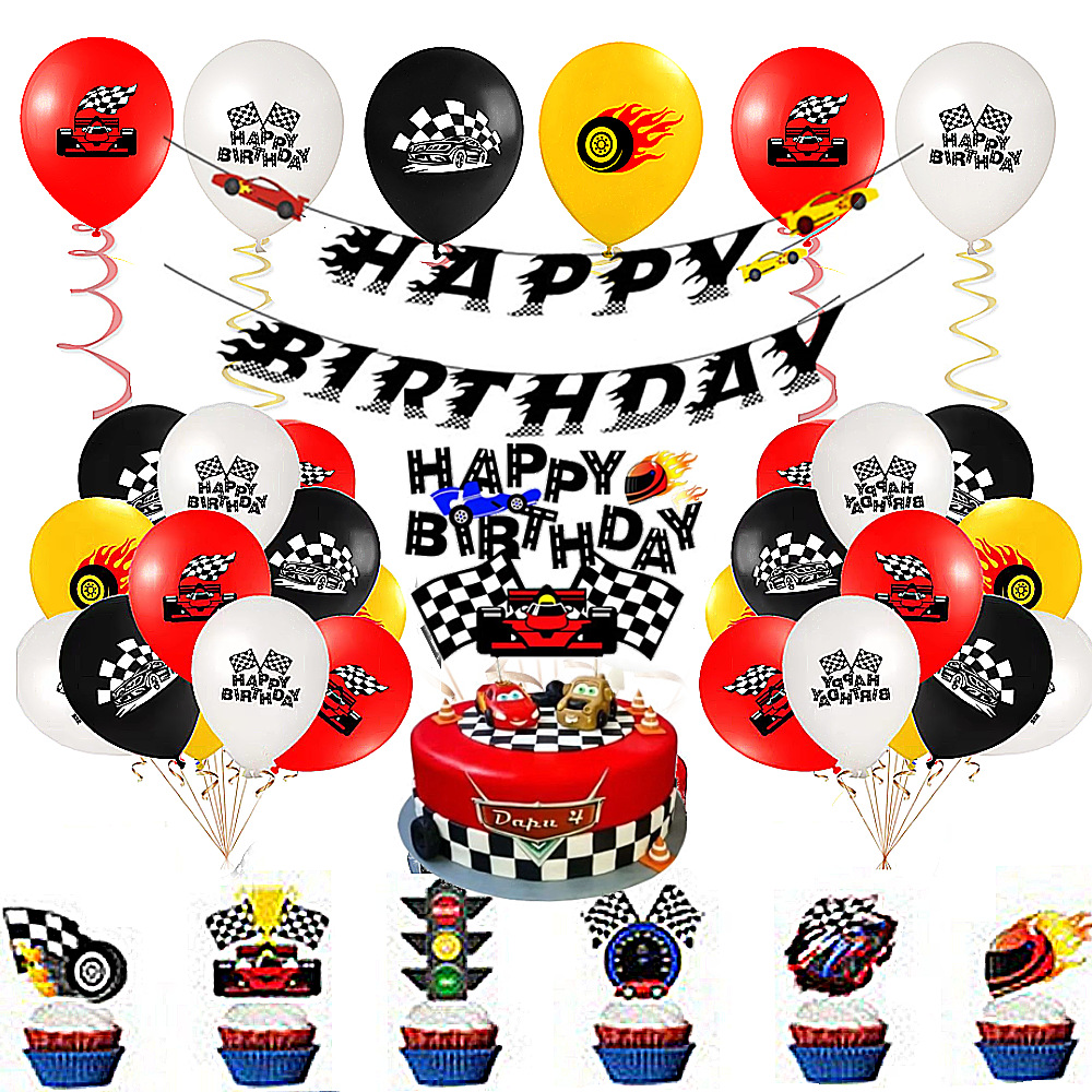 新しい赤と黒と黄色のテーマ子供の誕生日ラテックス風船パーティー幼稚園学校装飾レーシングバルーン