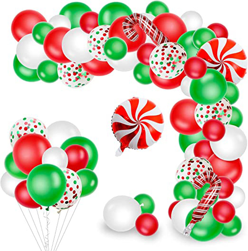 117匹のクリスマスの誕生日風船アーチ形の赤い白い風船キャンディー杖風車アルミ箔風船パーティー