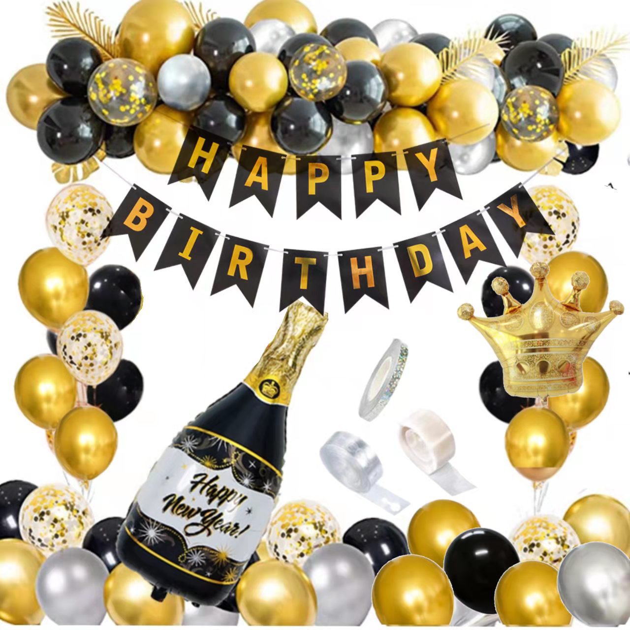 新品12インチブラックゴールドシルバーモチーフバルーンボトルクラウンアルミフィルムバルーン诞生日パーティーセット装饰