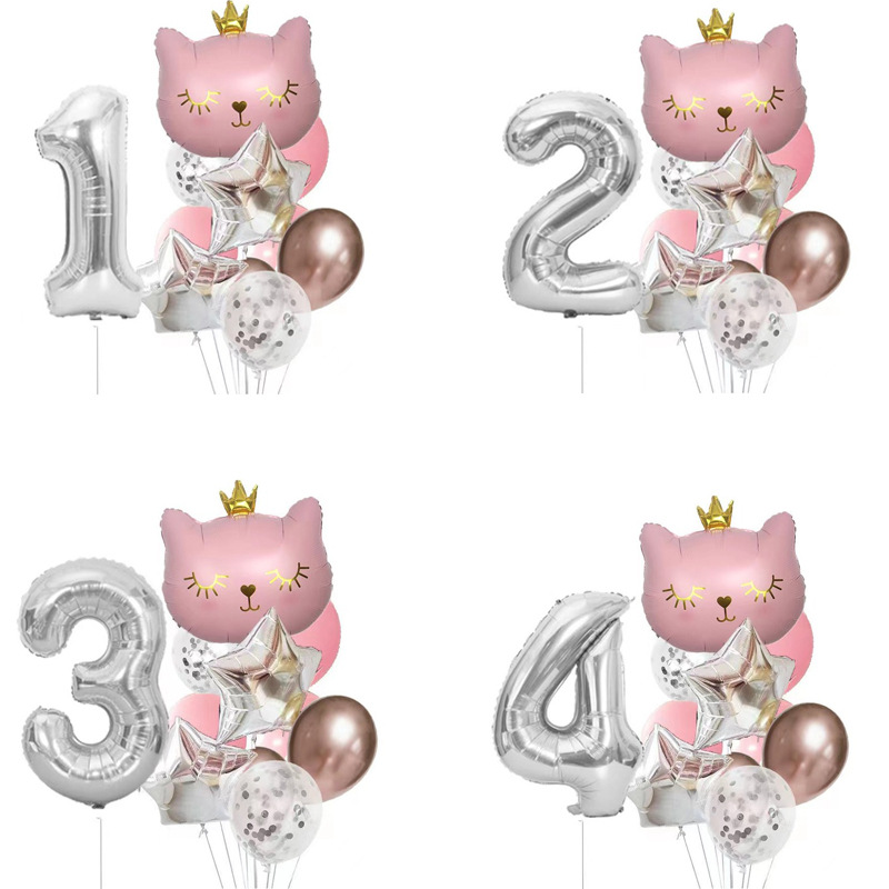 新型風船セット黒ピンククラウン猫とスパンコール風船セット32インチデジタルアルミバルーン卸売り