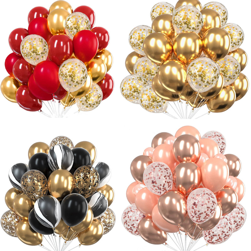 12インチの長さのスパンコール風船黒金粉大赤金色ラテックス風船セットバラ金風船