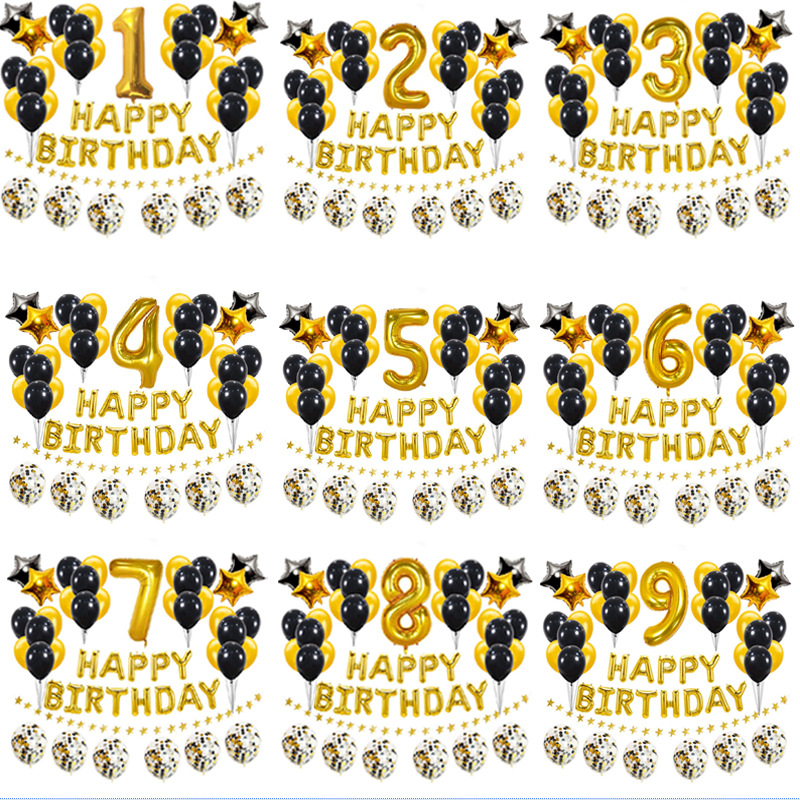 新品12インチ黒金バルーン18インチ黒金アルミフィルムバルーン32インチアルミフィルムデジタルバルーンパーティー诞生日セット