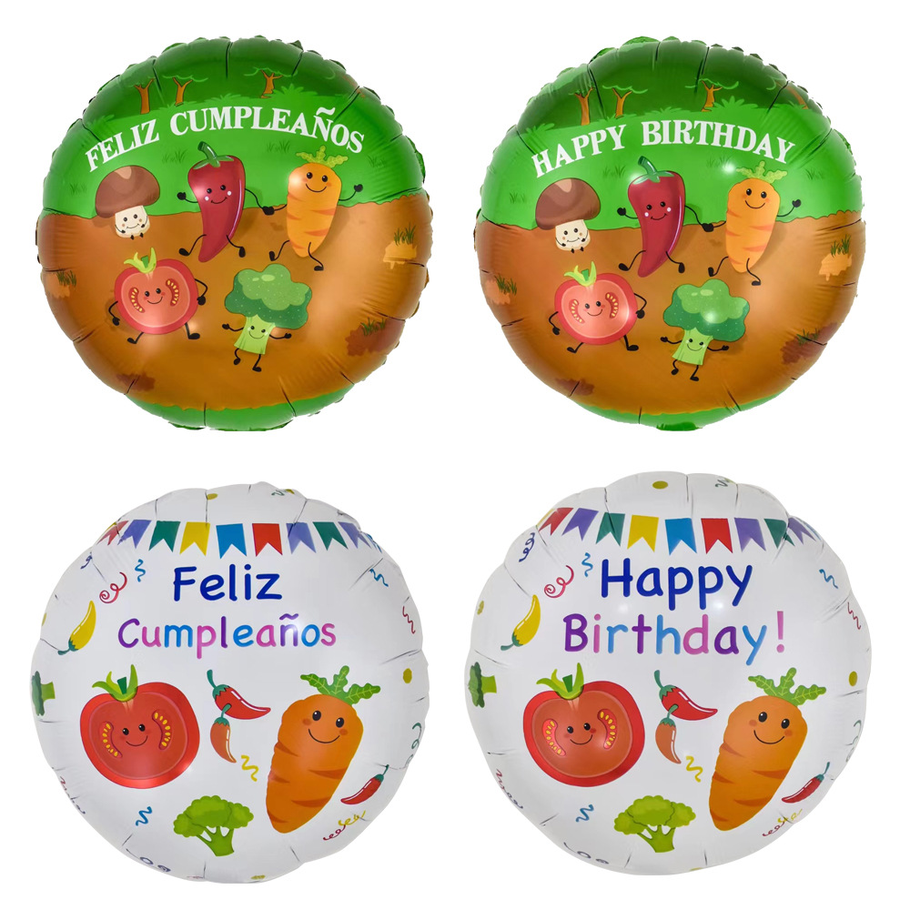 新品18インチフルーツ野菜円形アルミフィルムバルーン誕生日パーティー装飾西洋語誕生日プリント円形風船