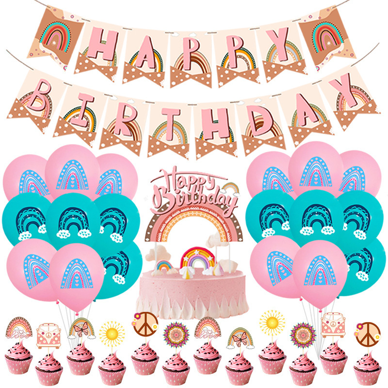 新しい虹の旗のケーキの挿し込みのボヘミアンのラテックスの風船のスーツの誕生日のパーティーの装飾のセット
