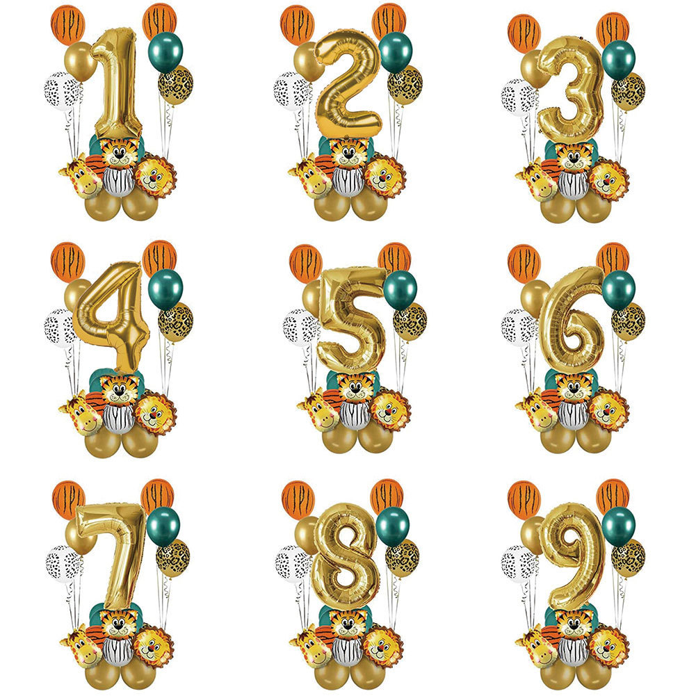 新しいジャングルの漫画の動物のアルミ箔の歳の誕生日の装飾のシーンはラテックスの風船のスーツの装飾の配置を配置します。