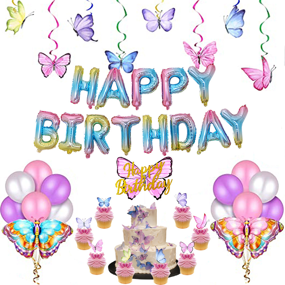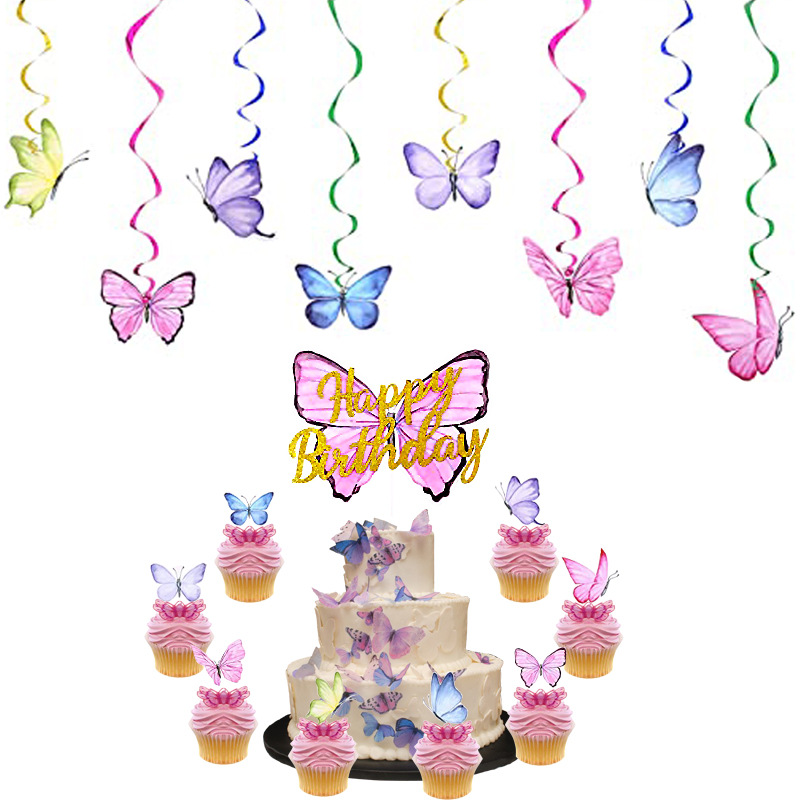 蝶のテーマパーティーの子供の誕生日パーティーの装飾蝶アルミ膜風船スパイラルプルケーキのイラストカード
