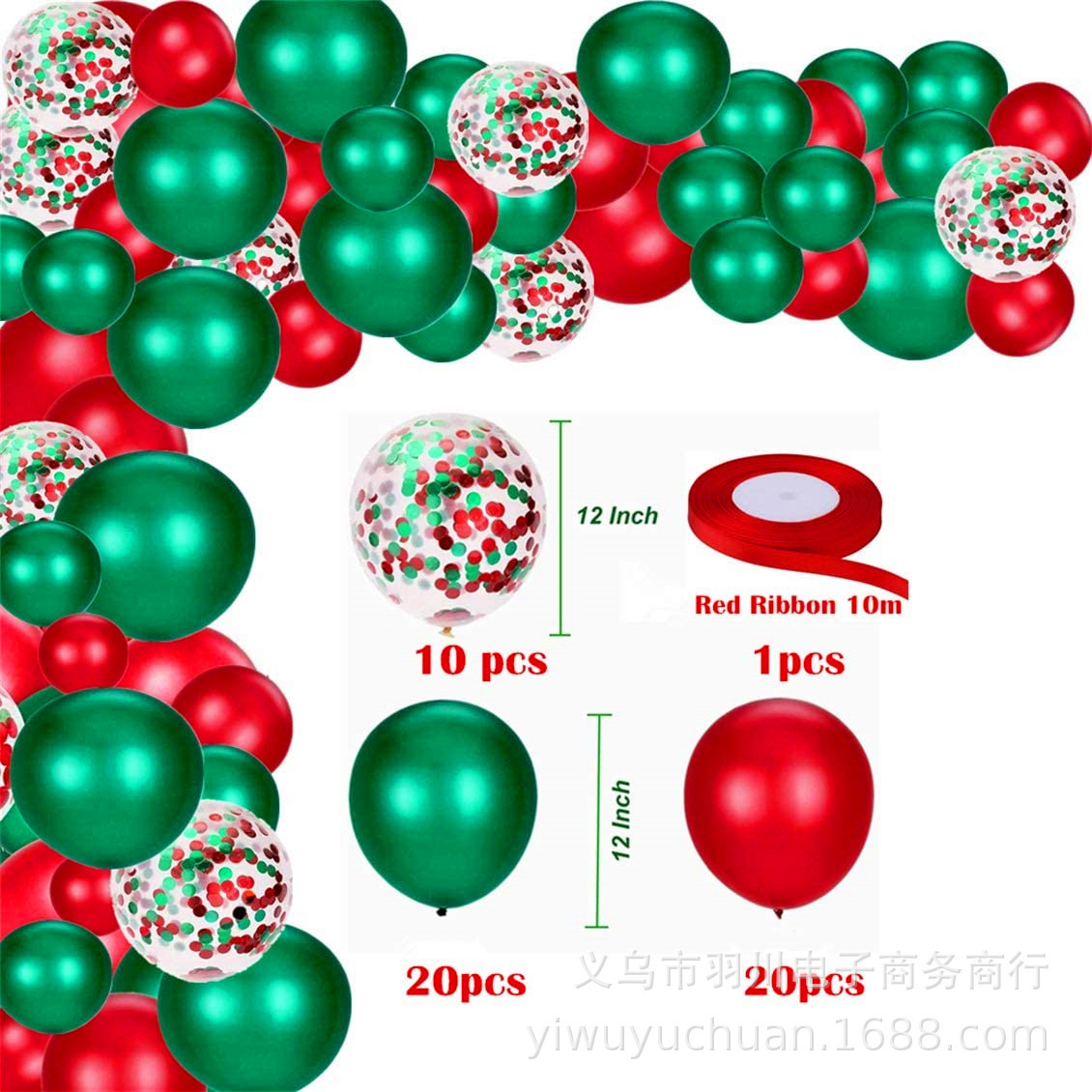 50個入りクリスマスバルーンチェーンセット赤緑風船は新年のクリスマスパーティーの装飾に適しています
