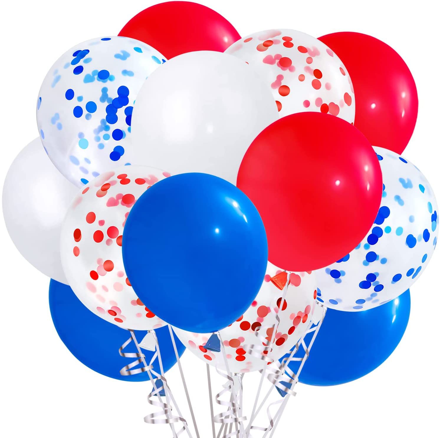 12インチ赤白青ラテックス風船赤青色紙屑セットは卒業独立日パーティー風船装飾に適している