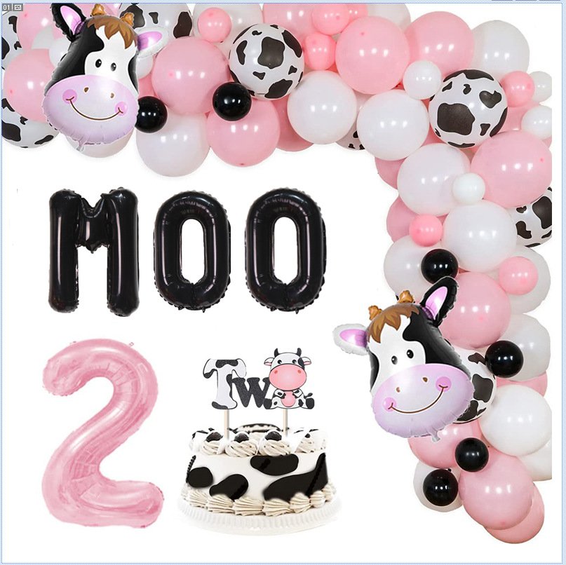 乳牛2歳誕生日パーティー女の子農場動物テーマ風船32インチデジタルアルミ膜風船装飾