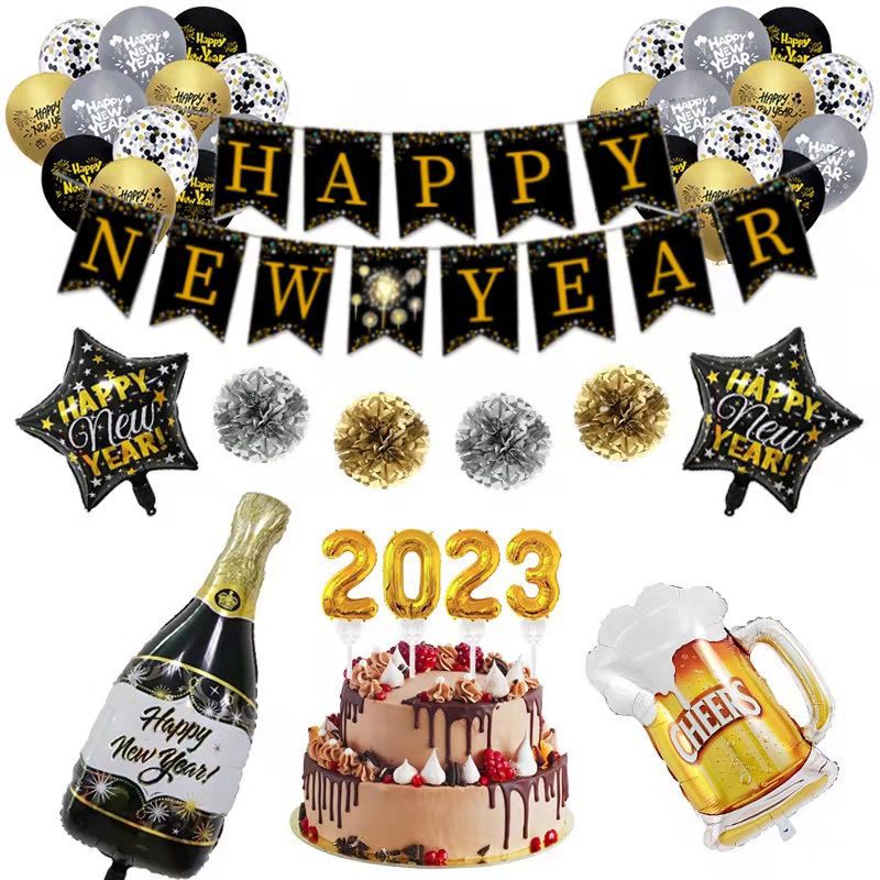 2023年新年に旗を引いてケーキを挿します。