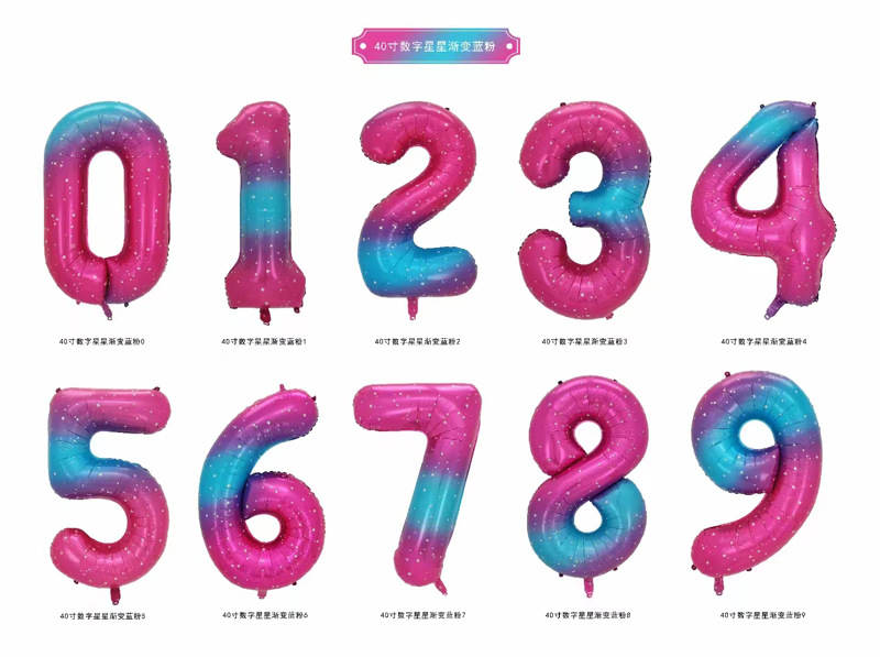 新型クロスボーダー40インチ星空グラデーション大数字0-9アルミ箔風船誕生日パーティーアレンジ