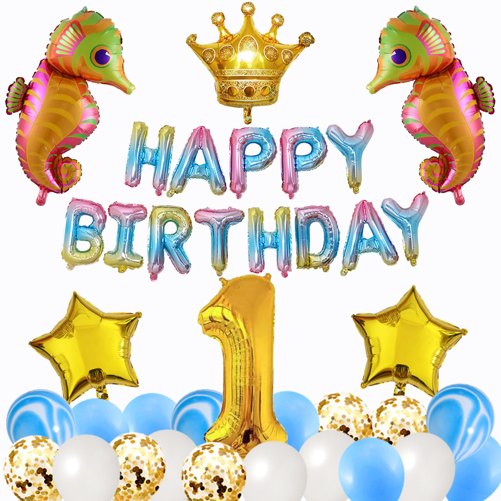 海洋テーマ海馬王冠アルミ膜風船赤ちゃん満1歳誕生日パーティー装飾風船セット
