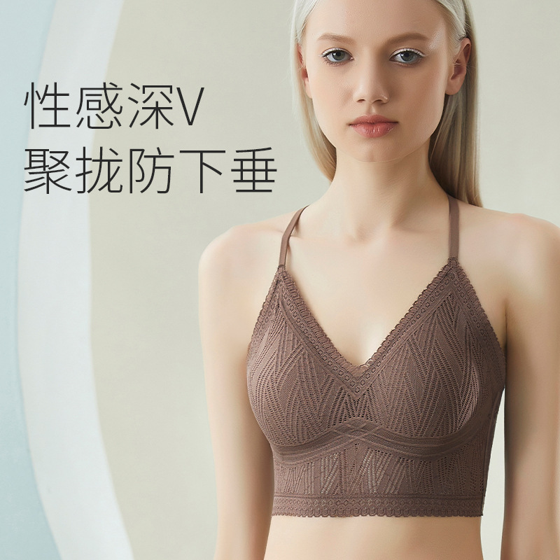 3033フレンチセクシーvネックストラップレースブラジャーベストクロス美背中半固定カップミディアムロング下着レディース