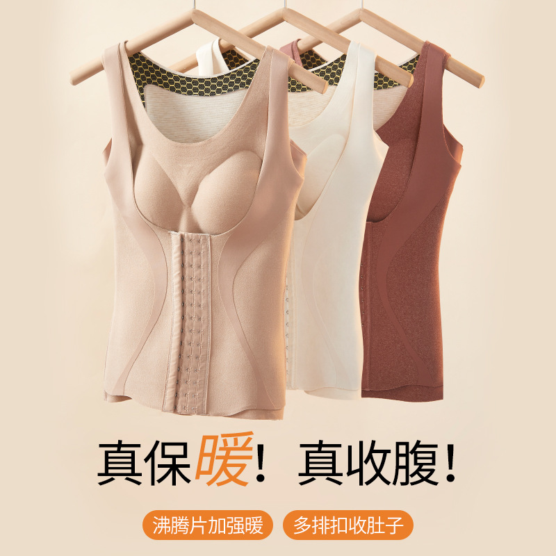 6811秋冬ドイツ製シルク混紡保温ベスト、胸パッド付き、宮廷風シェイプアップ、ボタン留め、お腹を引き締める女性用インナー