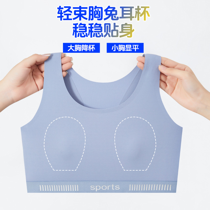 6839 通気性のある美しいバックウサギの耳ライトコルセットシームレススポーツブラ女性の大きな胸を示す小さな t スーパーフラット学生コルセット