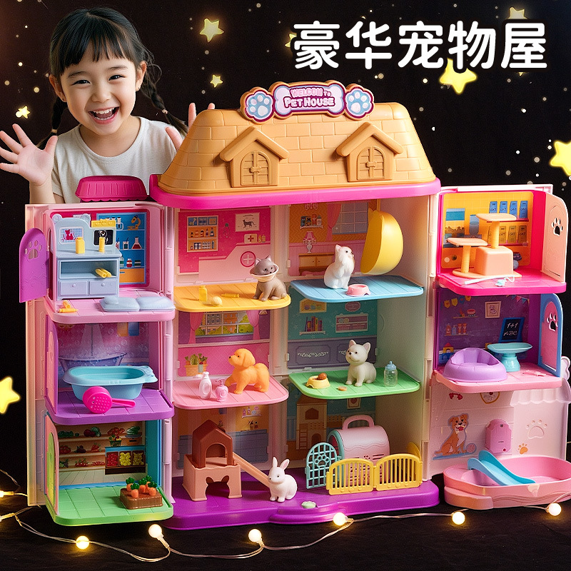 子供のおもちゃのままごとの女の子の女の子の6歳以上の3ペットの部屋の誕生日のプレゼントのネットの赤いネットは2025年に爆発します。