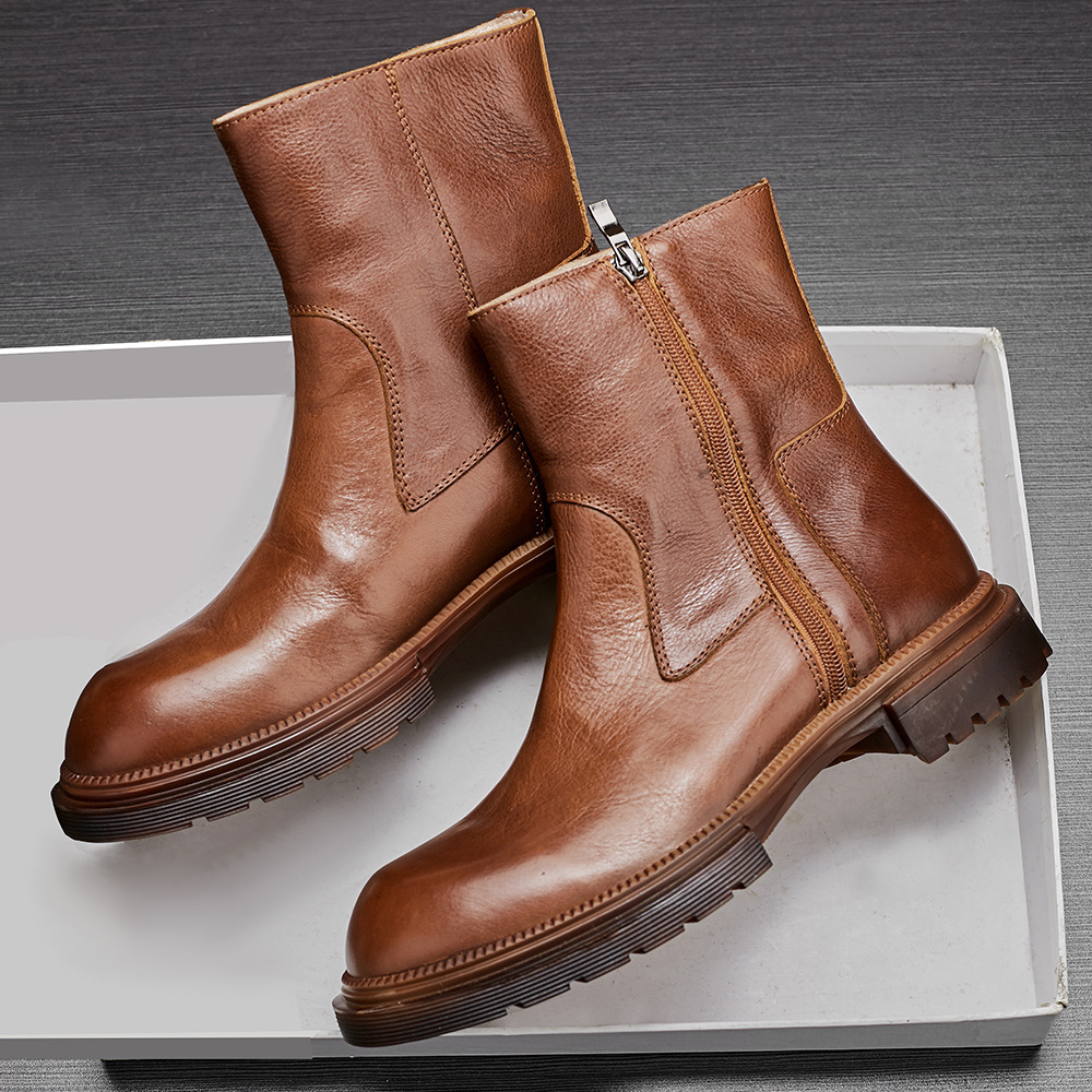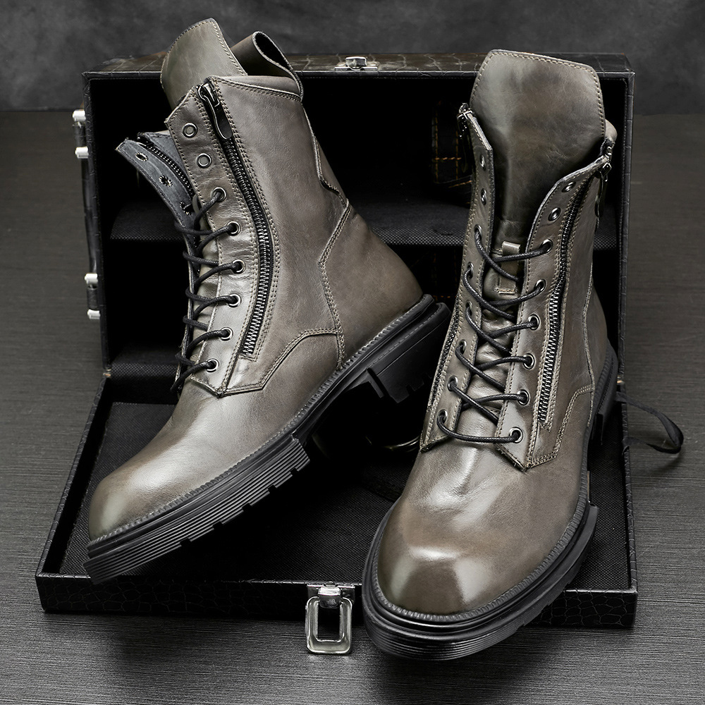 秋冬のレトロな馬丁の靴の男性の高組のファスナーの潮流の本革の工装の靴の厚い底の丸い頭の潮の皮の靴のアウトドアの靴