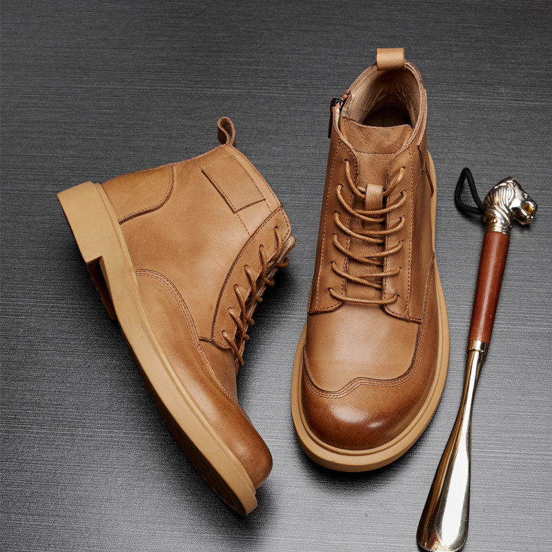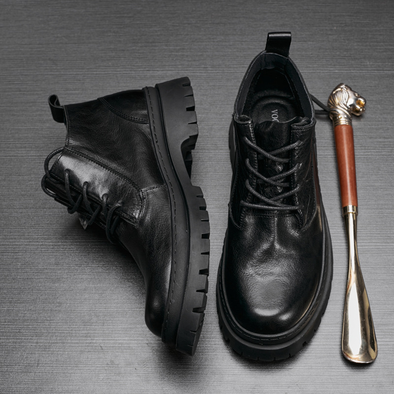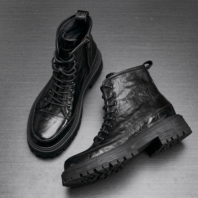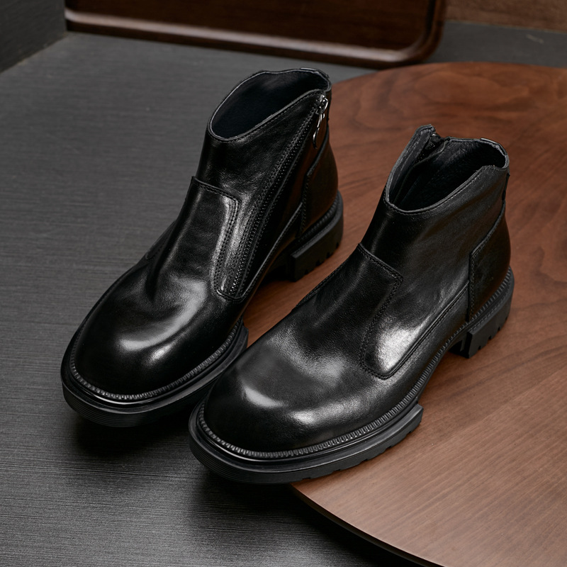 ブーツメンズ本革厚い底トレンドサイドファスナー革ブーツアウトドアラウンドヘッドファッション男ブーツハイパー個性マーティンブーツ