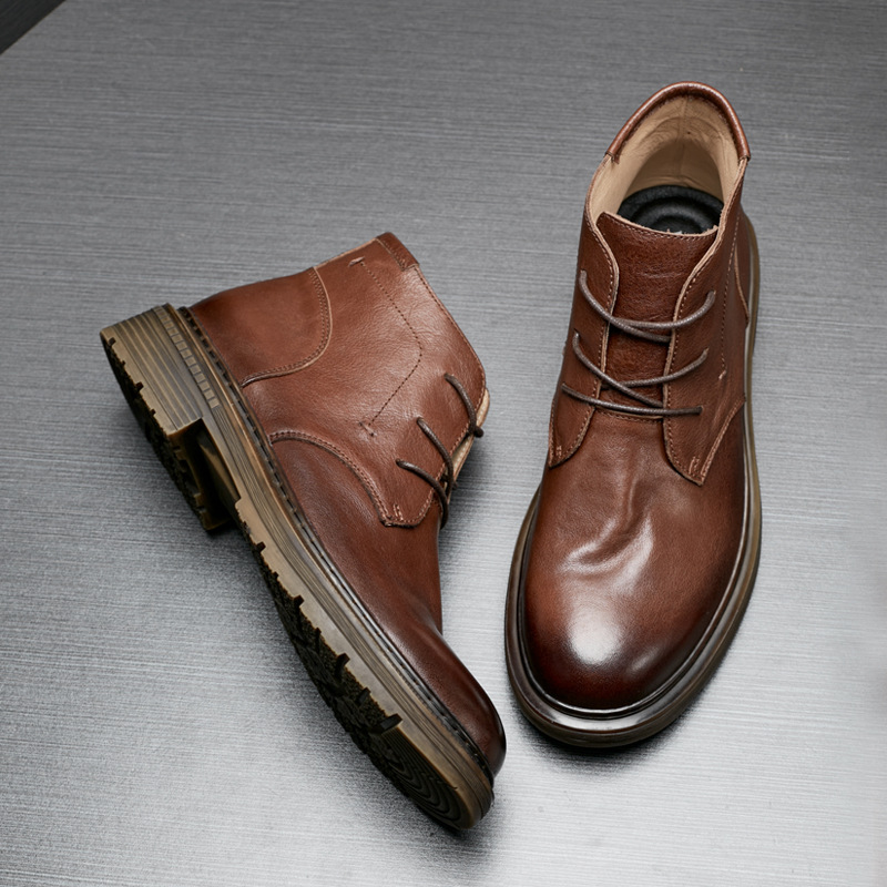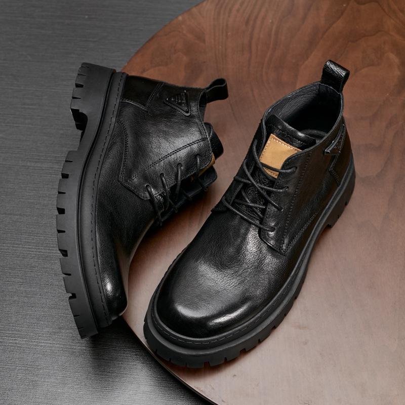 本革男靴秋冬厚い底レトロ高組機関車ショートブーツアウトドアファッション馬丁靴丸頭厚い底工装靴