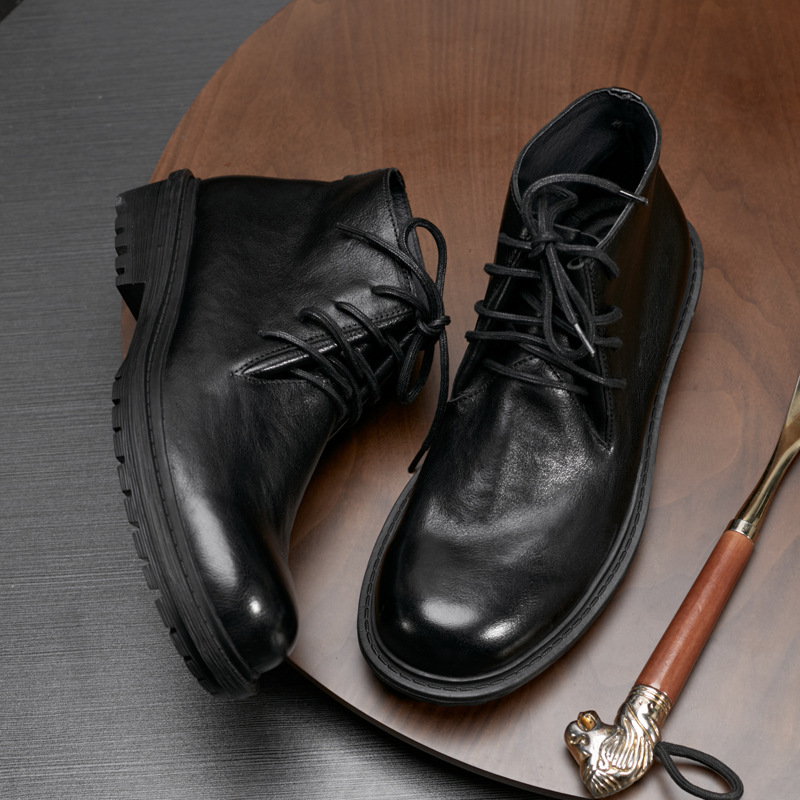 ブーツ男高組潮流工装靴秋冬レトロ青年ファッション機関車砂漠靴真皮丸頭マーティンブーツ