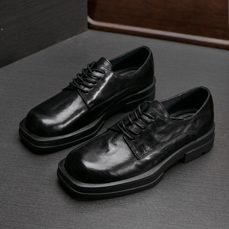 メンズシューズ2024春ビジネス通気性革靴厚い底スクエアヘッドレトロブラックダービーシューズファッションカジュアルシューズ