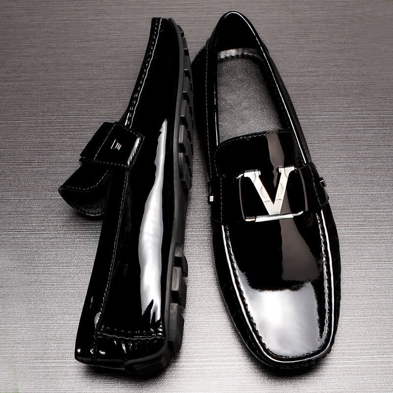 ヨーロッパ駅の大きいサイズの本革の英倫の豆の靴の男性の快適なファッションの男性の靴の漆の皮の個性の足の靴の男性のカジュアルシューズ