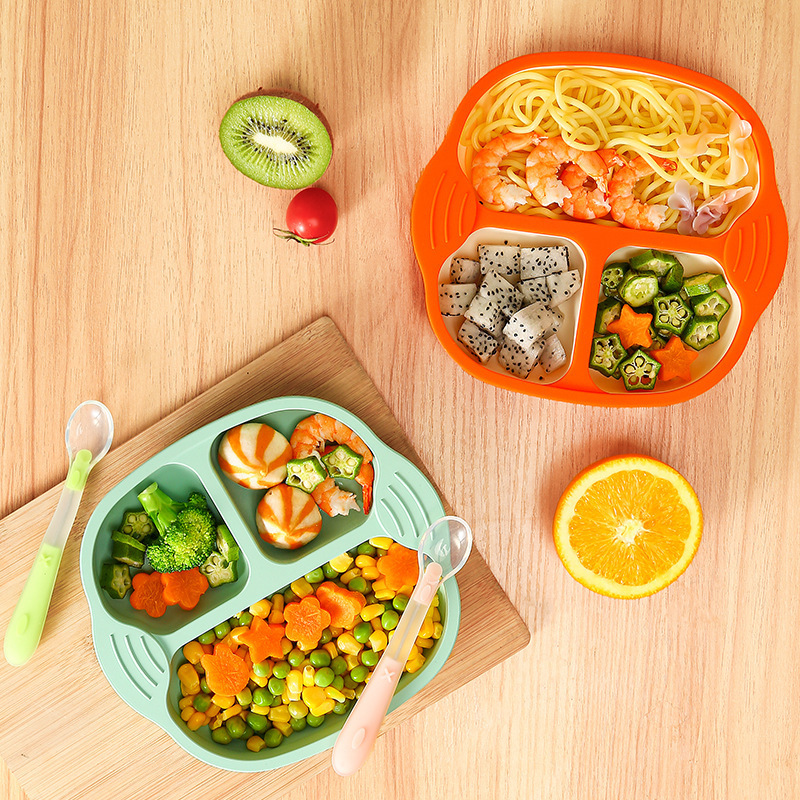 子供用シリコンディナープレートよだれかけベビー落下防止食器セットベビーシリコンコンパートメントプレート家庭用栄養補助食品ボウルスプーンプレート