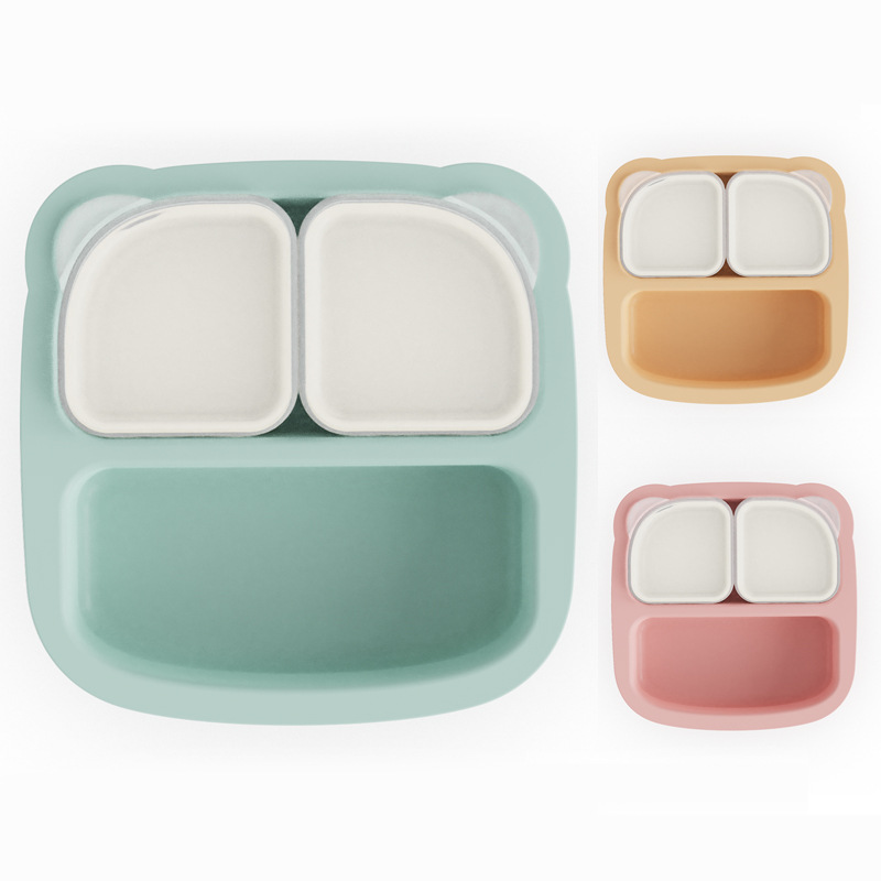 ベビー食器 3 点セット子供用シリコンコンパートメントプレートディナープレートシリコーン家庭用離乳食ボウルディナープレート