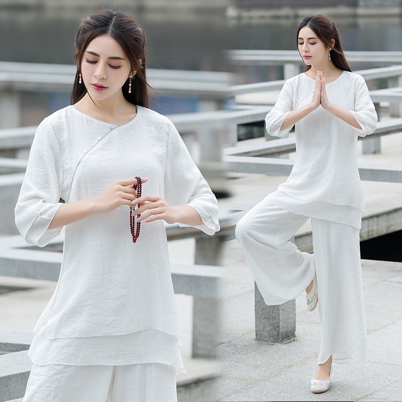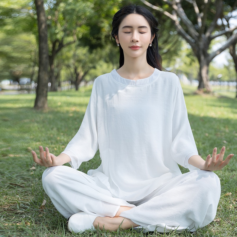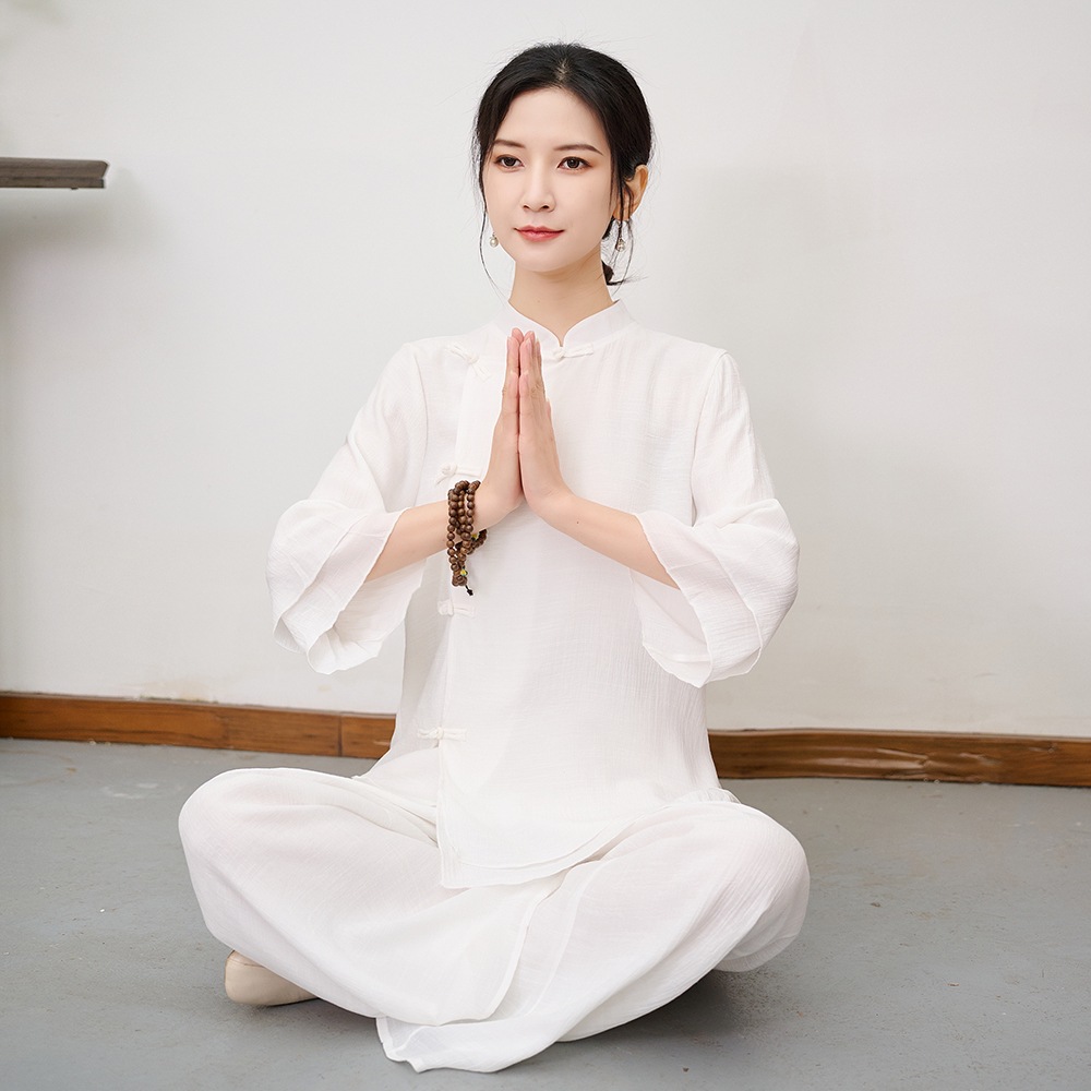 REAL SHOT # 2024 新エスニックスタイル綿とリネン禅瞑想トレーニングスーツ中国風ヨガ服茶服女性のための