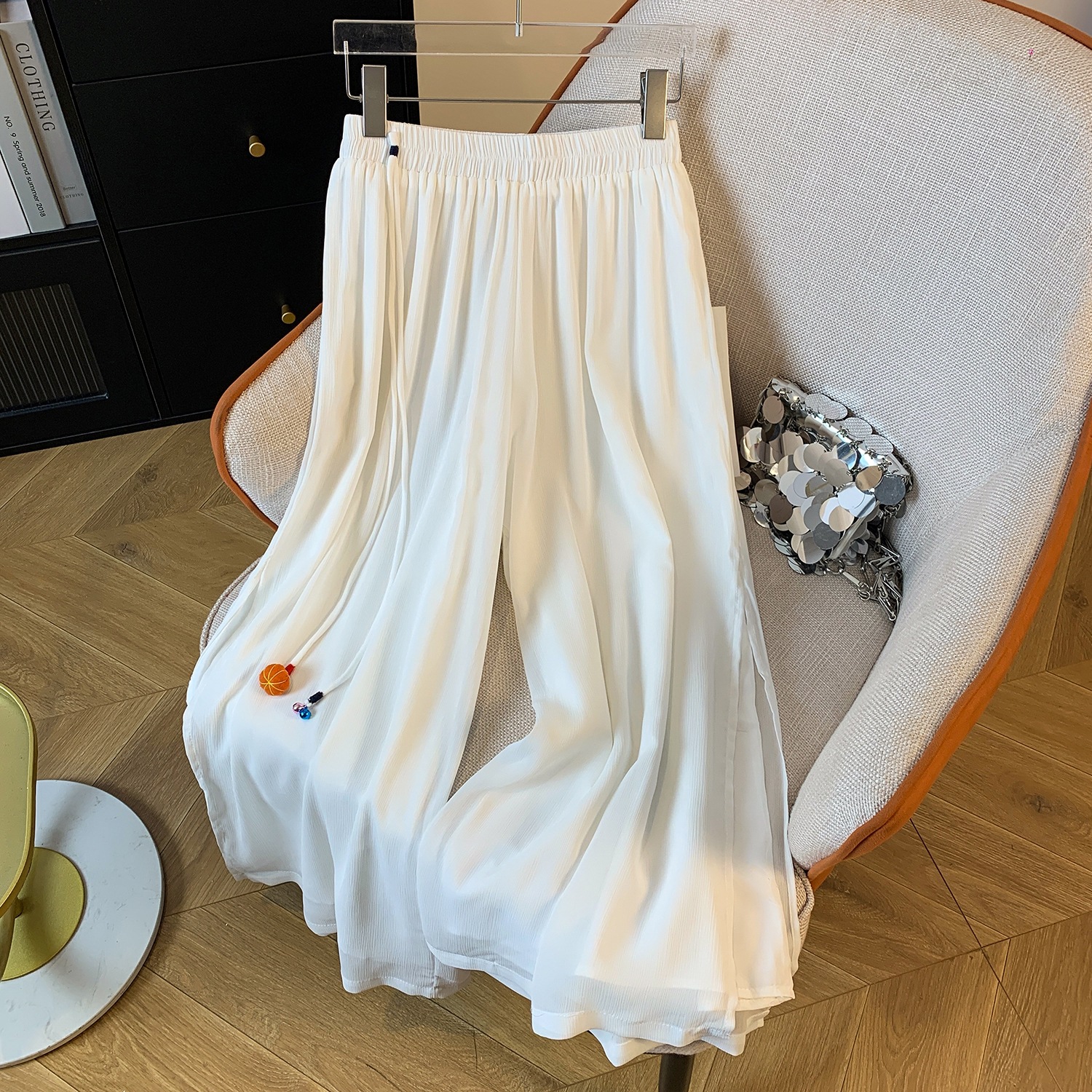 8305 # シフォンワイドレッグパンツ女性のハイウエスト 2025 夏中国風禅パンツルーズ座りダンス茶服女性のパンツ