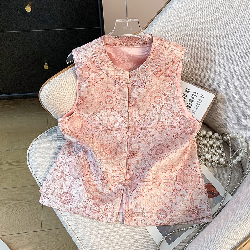 新しい中国風の手作りボタンジャカードサテントップ、女性らしい気質と優しい刺繍ベスト、林野清風
